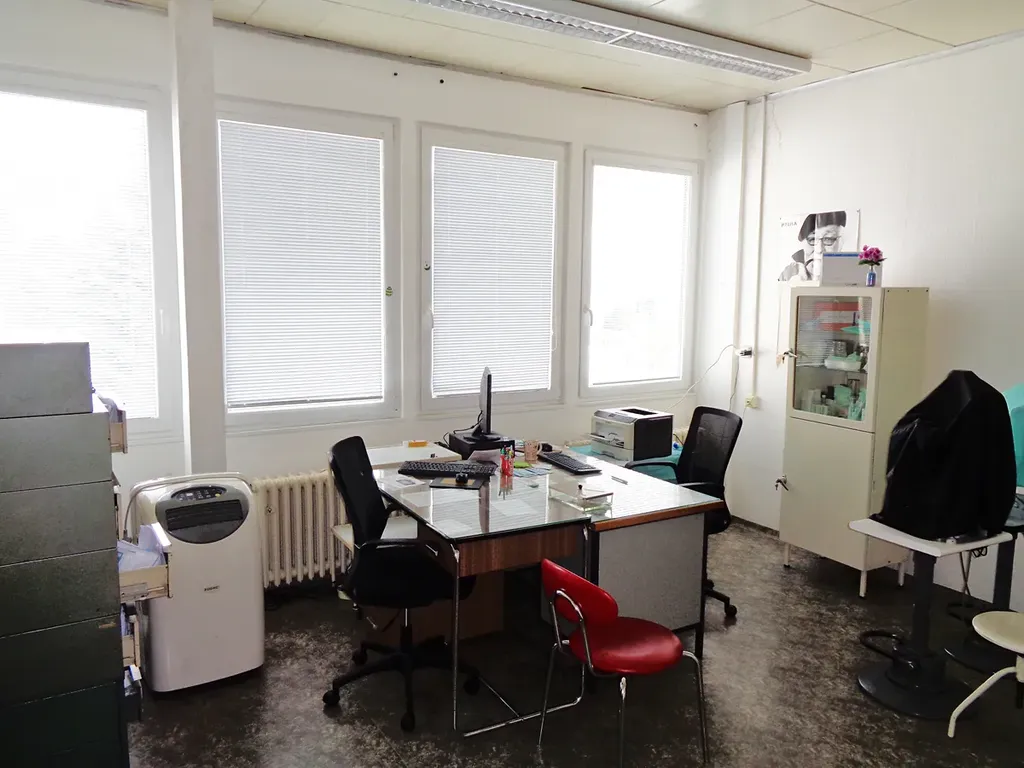 Jedná se o dvě místnosti (ordinace – 24 m2 a denní místnost – 14 m2) a čekárnu (17 m2) o celkové užitné ploše 55 m2, které jsou umístěny ve 4. NP budovy s výtahem.