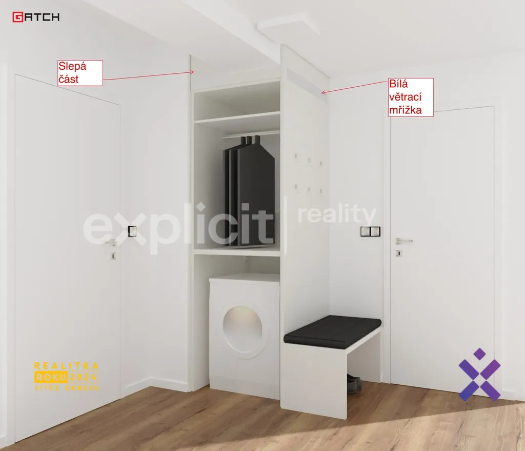 • předsíň s vestavěnou skříní a botníkem na míru (bude dokončena 6/2025)