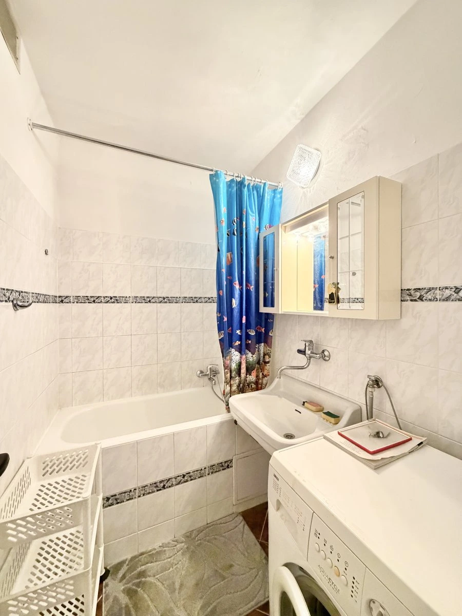 Byt se nabízí částečně vybavený. Kuchyně disponuje elektrickým sporákem, lednicí a digestoří. Obývací část je zařízena pohovkou a křeslem. V koupelně je vana, umyvadlo a pračka. Toaleta je umístěna samostatně.