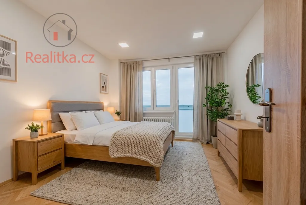 Dominantou bytu je prostorný obývací pokoj se vstupem na zasklenou lodžii. K dispozici jsou dále dvě samostatné ložnice, z nichž jedna má rovněž vstup na zasklenou lodžii. Samostatná kuchyně nabízí další lodžii, což zajišťuje dostatek světla a příjemný prostor pro každodenní život. V rámci rekonstrukce se podařilo vytvořit uprostřed bytu prostornou šatnu.