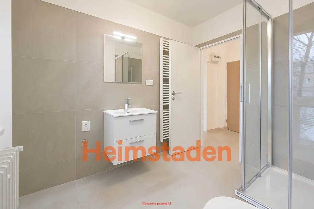 Interiér bytu prošel nadstandardní a velmi vkusnou rekonstrukcí s důrazem na detail, kvalitu a moderní design. Koupelna je opravdovým zážitkem – velkoformátové šedé obklady, prostorný sprchový kout, závěsná toaleta Geberit a přímý vstup na velký balkon, který plynule navazuje až na obývací pokoj. V hale a koupelně dominuje elegantní šedá velkoformátová dlažba, zatímco obytný prostor s kuchyňským koutem doplňuje moderní plovoucí podlaha v teplém dekoru dřeva.