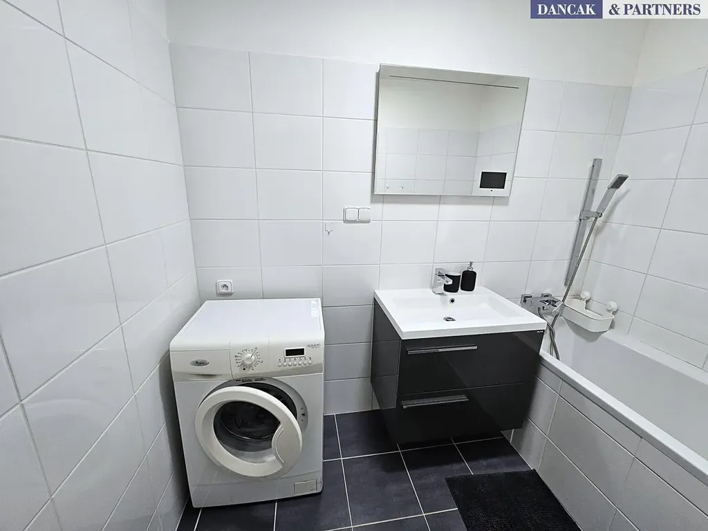 Kuchyň s moderní kuchyňskou linkou, indukční deskou, troubou, digestoří a lednicí s mrazákem. V koupelně keramické obklady, dlažba, vana, umyvadlo se skříňkou, zrcadlo a pračka. Ložnice je vybavena postelí a nočními stolky. V předsíni vestavěná skříň s úložným prostorem. Byt je k dispozici od 1.12.2025. Jedná se o příjemné a klidné bydlení, obklopené zelení a v dosahu služeb. Makléř doporučuje.