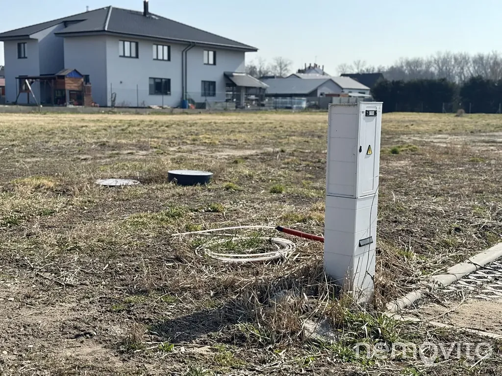 - Kompletně zasíťováno, přípojky ukončené v šachtách na pozemku (vodovod, tlaková kanalizace, optická síť, elektro).