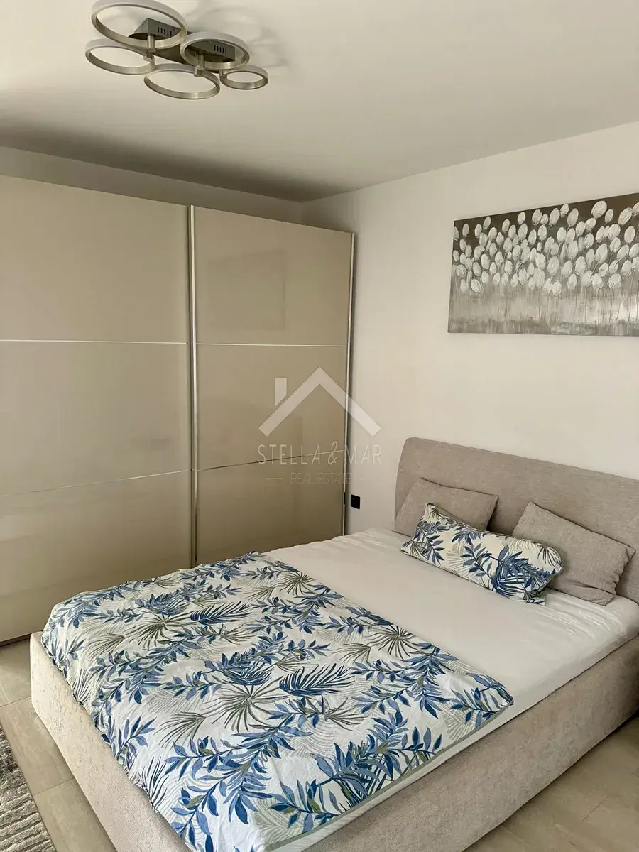 Dům je vybaven kvalitním nábytkem na míru a televizí.