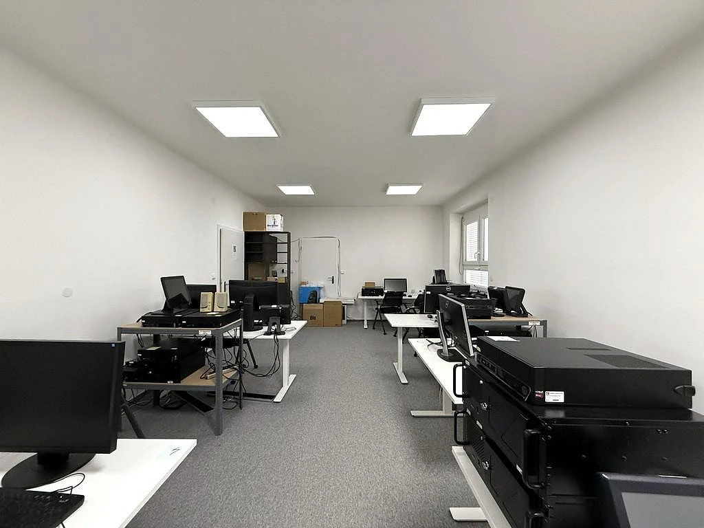 Nabízený nebytový prostor se nachází v kamerově hlídané budově za bránou. Kancelář má celkovou výměru cca 38 m² a nachází se v přízemí. Prostor je příjemně prosvětlený díky dvěma oknům, která vytvářejí vzdušnou a komfortní pracovní atmosféru. Kancelář je nově vybavena malou kuchyňskou linkou s dostatečným úložným prostorem a dřezem. Na chodbě jsou společné prostory jako je WC nebo zasedací místnost, kterou si lze pronajmout za poplatek. Zasedací místnost je vybavena velkým stolem se židlemi, křesly, televizemi a dalším nábytkem včetně kuchyňské linky s dřezem a lednicí.