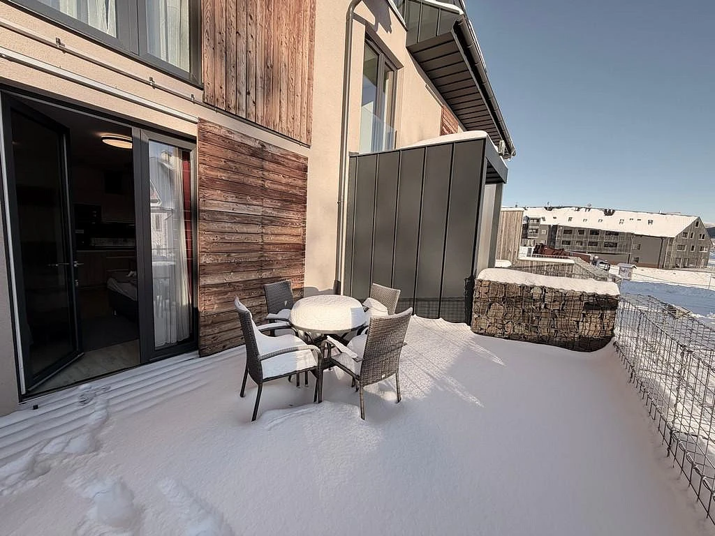Ve třípodlažní budově, kde se apartmán nachází je mimo apartmány a sklepní kóje i lyžárna, která je určena pro obyvatele či nájemce tohoto domu. Budova, jak je víše uvedeno se nachází v bezprostřední blízkosti sjezdovky, kde bez problémů dojdete v lyžácích přímo k vleku. Samotná budova stojí na velkém uzavřeném pozemku, kde je přístup pouze závorou na dálkové ovládání, což zajišťuje mimo jiné i maximální bezpečnost osob v resortu se nacházejících. U budovy je také malý parčík, kde je ohniště s malou hrací plochou pro děti.