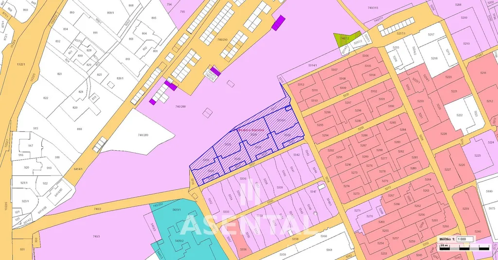 Pozemky jsou přístupné z městské komunikace ul. Modrá a ul. Vysoká.