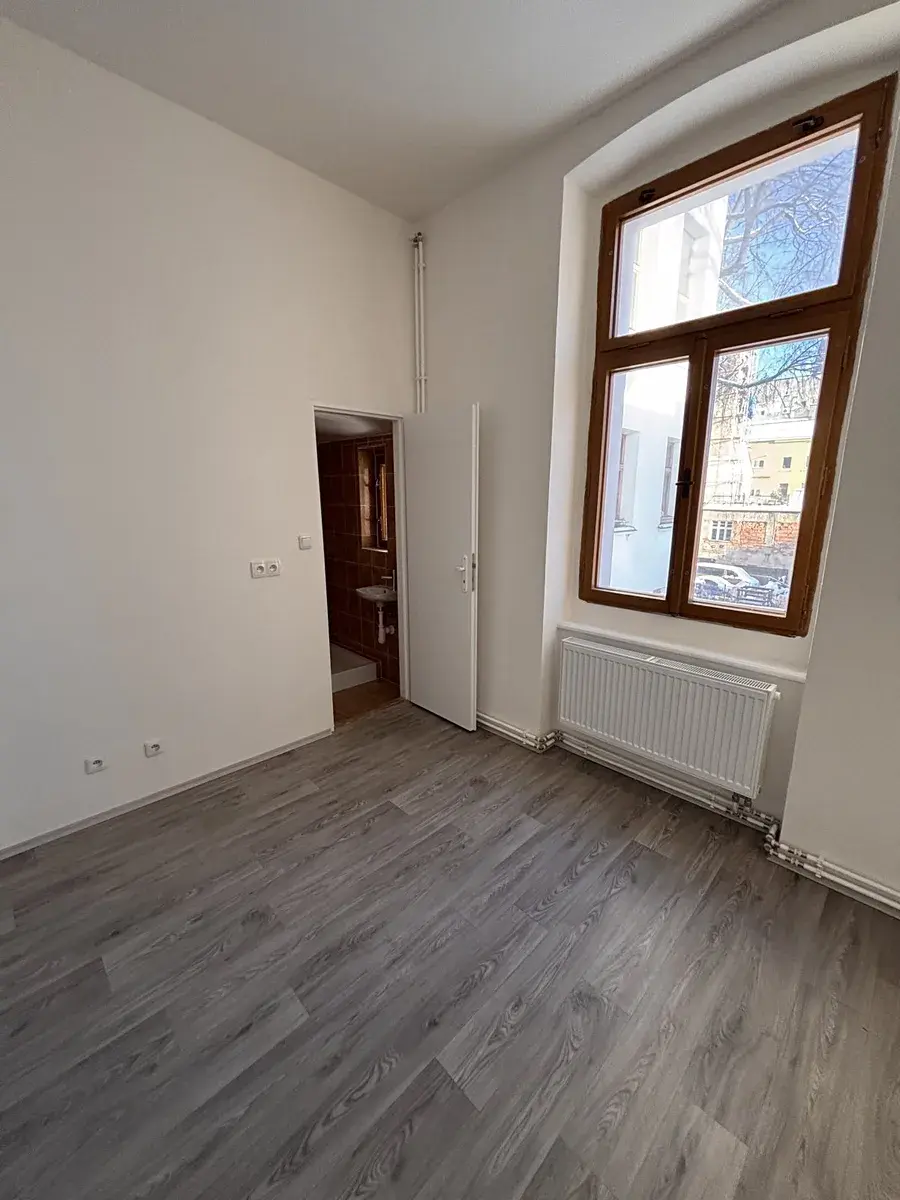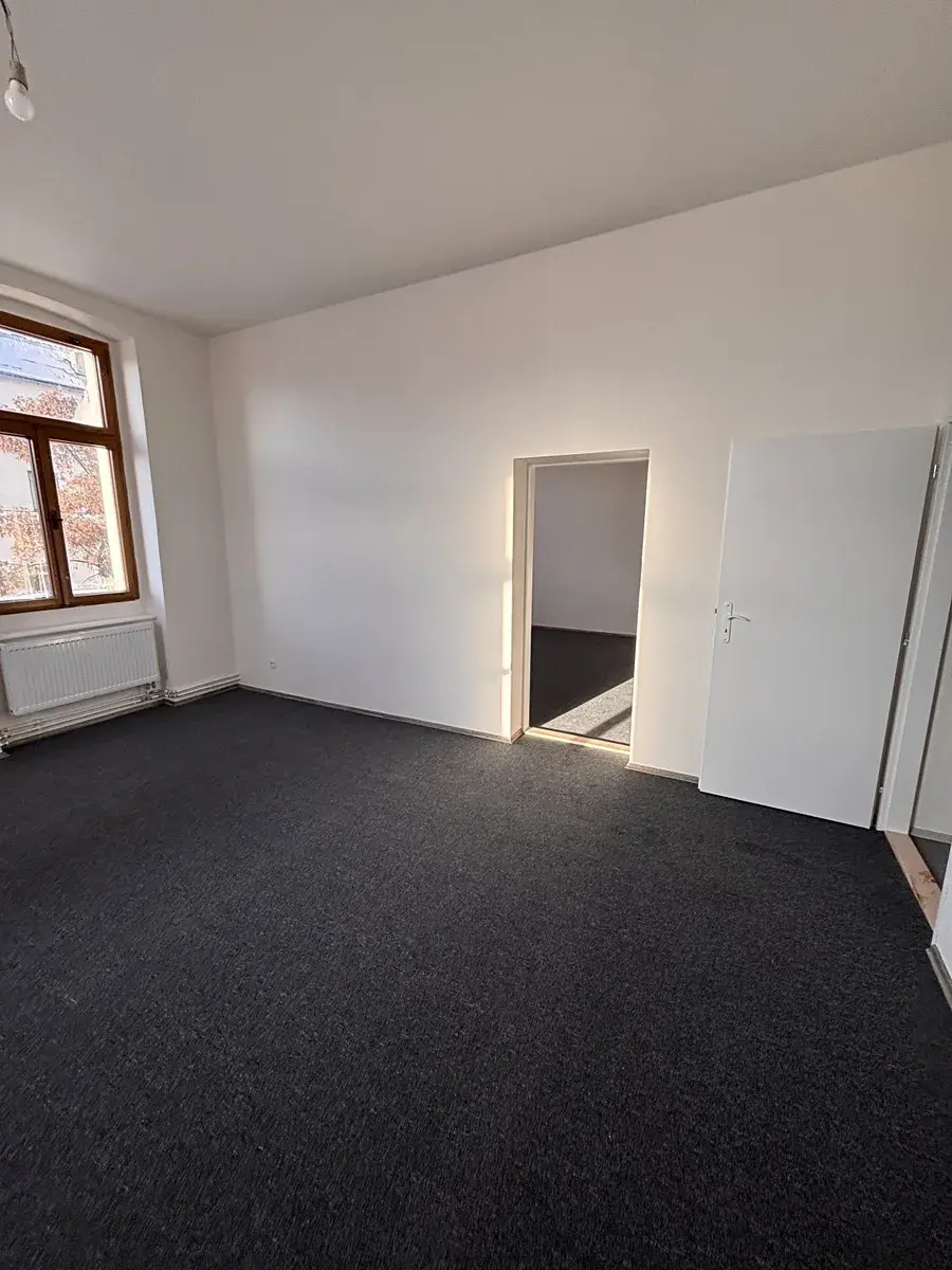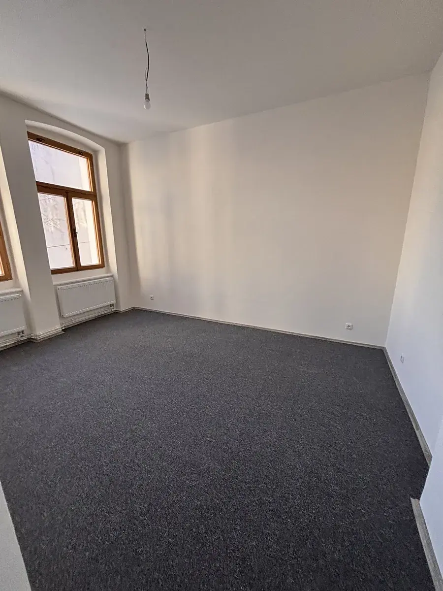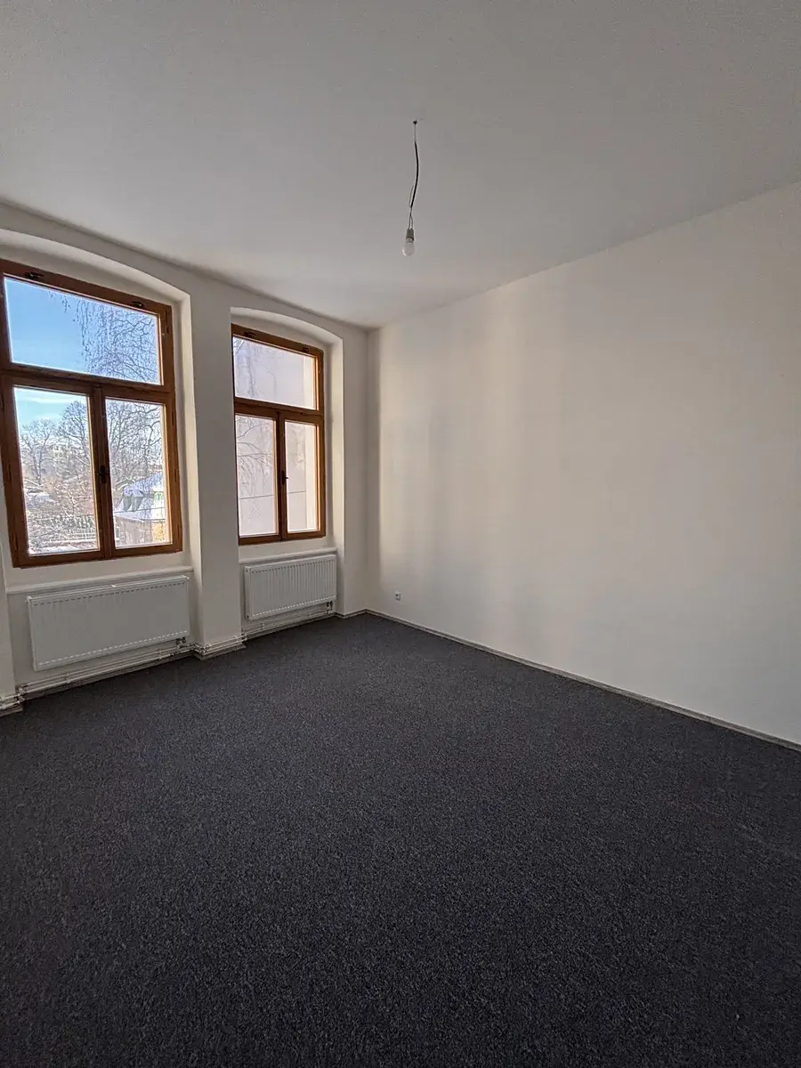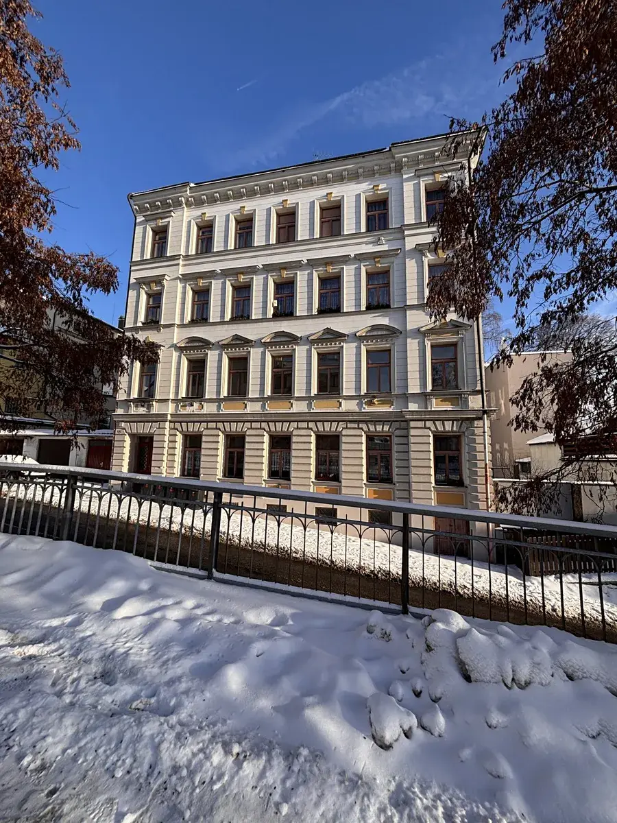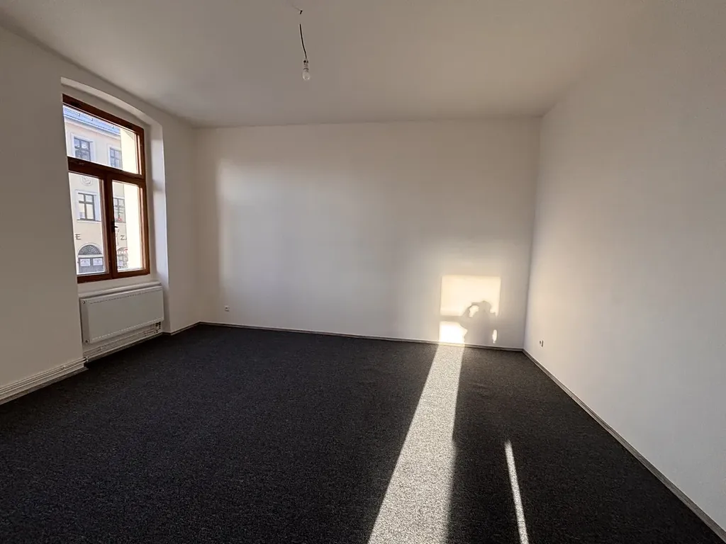 Pronájem bytu 3+1 ve 2. patře v cihlovém domě v centru Liberce. Dům je po rekonstrukci fasády. Byt nyní prošel kompletní rekonstrukcí a nyní je připraven na pronájem. Výměra bytu je 80m2, po vstupu ze společné chodby je menší předsíňka, kde jsou dveře na WC, kde je umyvadlo a je zde i okno. Pokračuje se do další předsíně a z ní jsou vstupy do kuchyně a 2 pokojů. Třetí pokoj je za obývacím pokojem. Okna jsou dřevěná, nová elektřina, nový plynový kotel. Kotel slouží na topení i ohřev vody. Kuchyň je bez kuchyňské linky, ale po dohodě s nájemníky bude nainstalována. V pokojích jsou nové podlahy – koberce, v předsíni a kuchyni je nové lino. Byt má nové štuky a bílou výmalbu. V domě není výtah. K bytu je možnost užívání společné zahrady za domem. Okna bytu jsou od východu až na západ. Byt je velmi slunný a světlý. Z oken kuchyně je výhled na město a zahradu za domem. Menší pokoj má okna do zahrady s výhledem na Ještěd, obývací pokoj výhled na Ještěd a ulici. Pokoj vedle obýváku jde do ulice a je orientován na západní stranu.