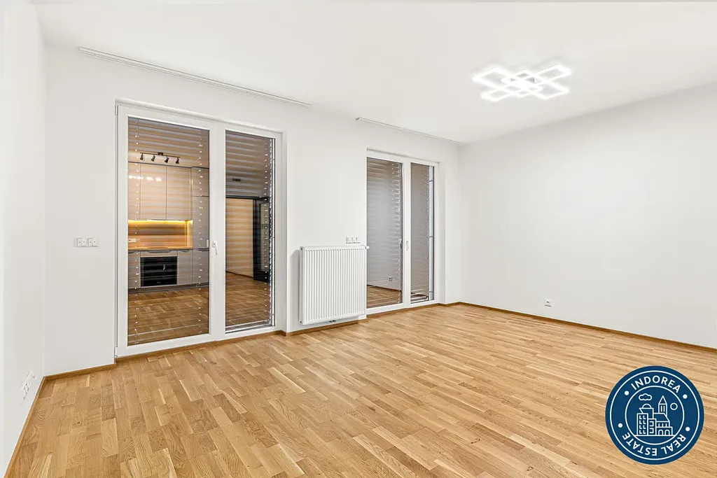 Tento zcela nový a zatím nikým neobývaný byt je částečně zařízen. Konkrétně tedy kuchyňská linka s vestavnými spotřebiči (myčka nádobí, trouba, varná deska, lednice), šatní skříň, koupelnový nábytek a automatická pračka.
