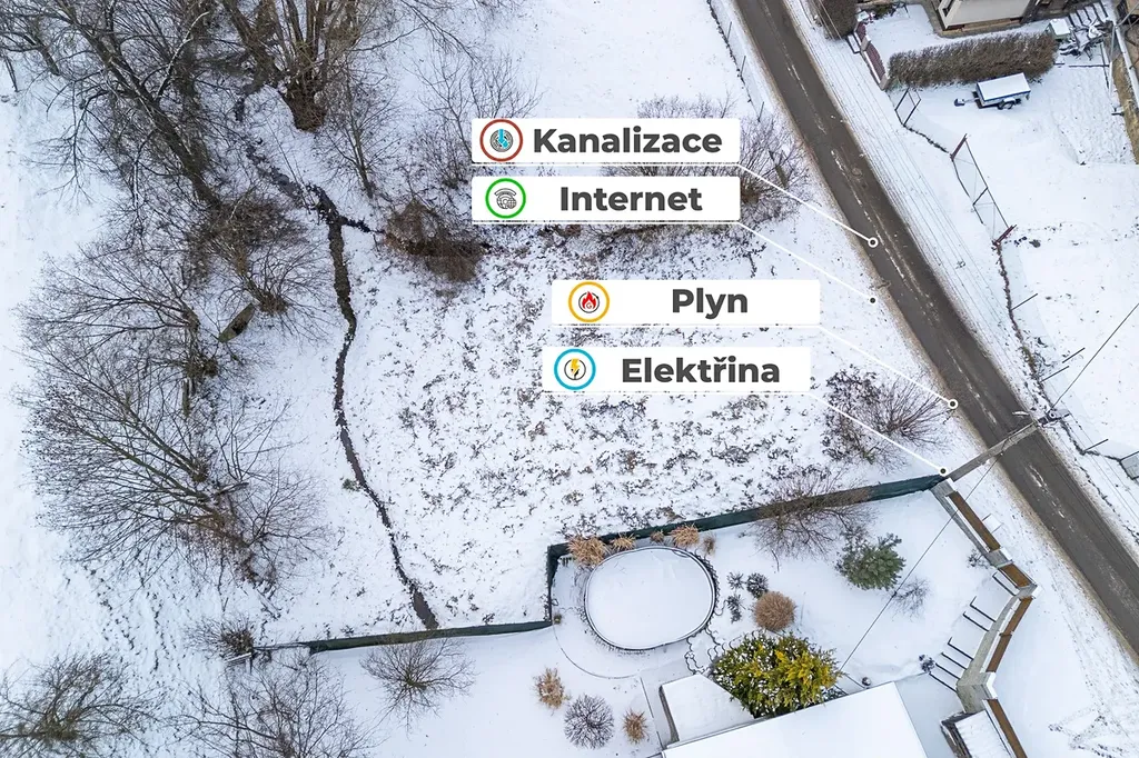 Pozemek tvoří ucelený celek o výměře 503 m² a je přístupný po obecní zpevněné komunikaci, která vede až přímo k hranici parcely. Velkou výhodou je dostupnost inženýrských sítí, které jsou dovedeny k pozemku.