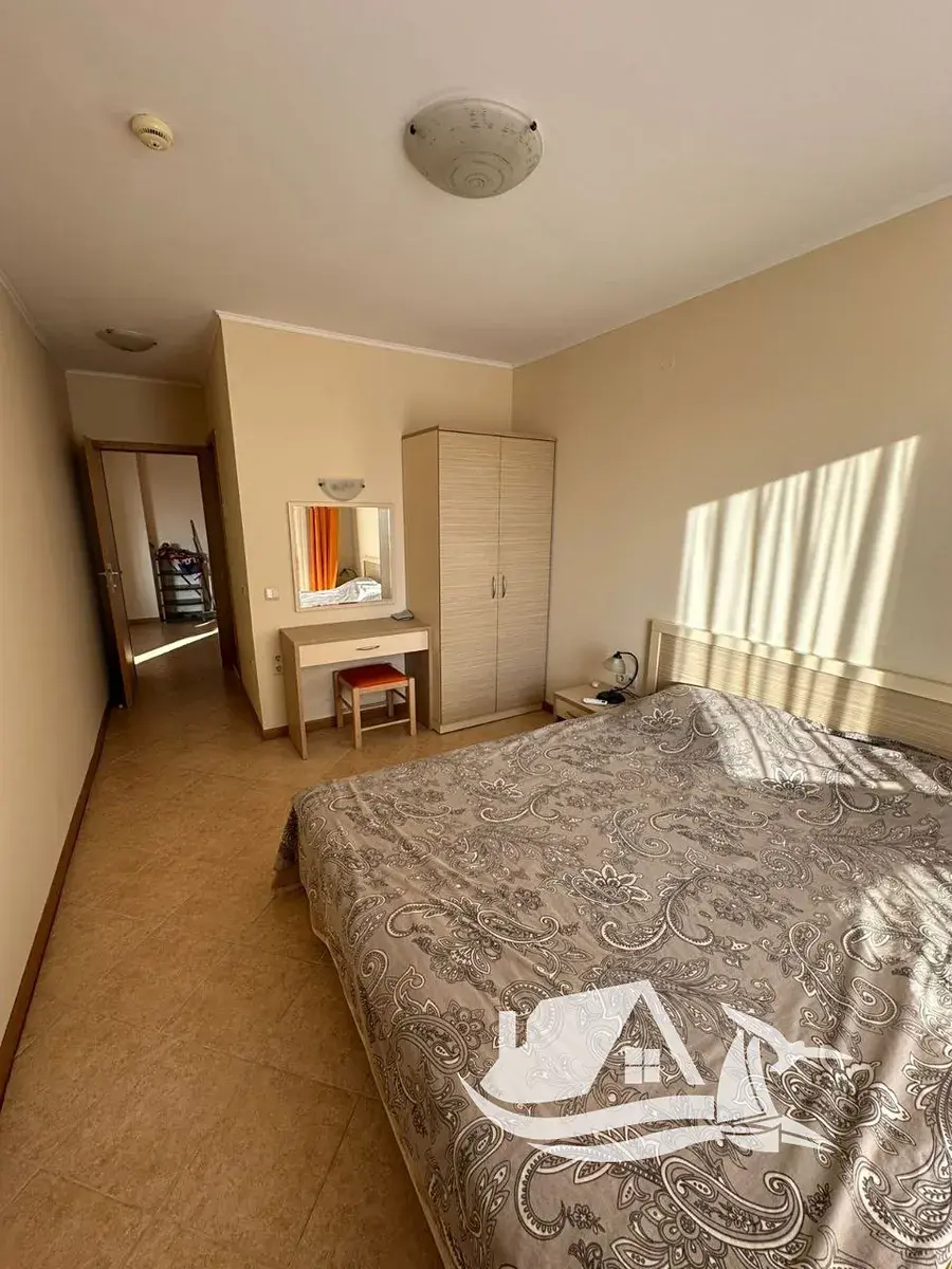 Pláž je vzdálena přibližně 450 metrů a nabízí široké písečné pobřeží s pozvolným vstupem do moře. Okolí je bohaté na restaurace, kavárny, trhy, obchody i zábavu pro děti i dospělé. Slunečné pobřeží je známé svou živou atmosférou, aquaparky, sportovními aktivitami i dlouhou promenádou. Jen pár minut jízdy se nachází historický Nesebar zapsaný na seznamu UNESCO, ideální pro výlety a večerní procházky.