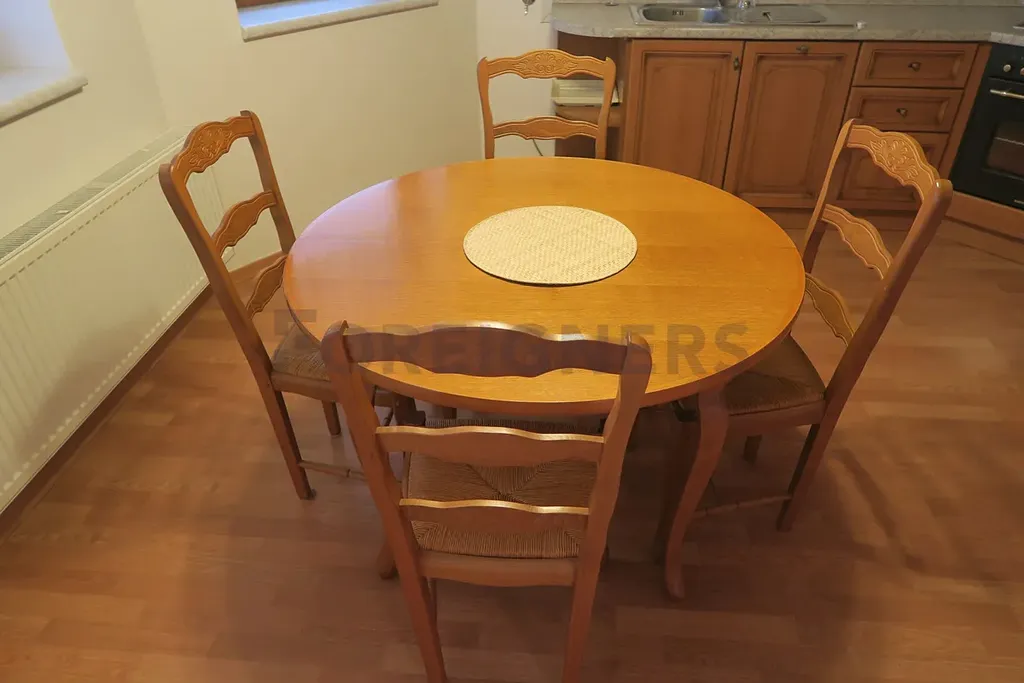 kuchyně 16 m² – plně vybavená (myčka, sporák s troubou, jídelní stůl, 4 židle)