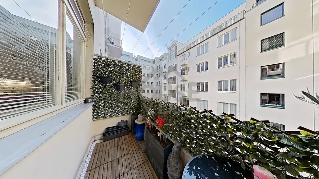 Byt se nachází ve 3. patře domu ze 30. let s výtahem a velkoryse řešenými byty, s vysokými stropy a velkými francouzskými okny, která zajišťují výjimečnou světlost všech obytných místností. Komfort bydlení podtrhují zachovalé dubové parkety ve všech pokojích a na svou dobu převratné stropní vytápění, které zajišťuje rovnoměrné a úsporné teplo bez rušivých radiátorů.