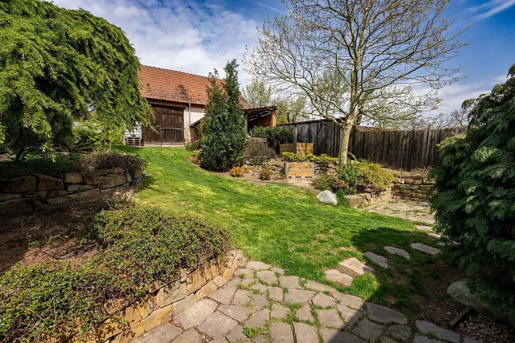 Soukromá oáza: Vaše zahrada je navržena pro relaxaci a zábavu. Dominantou je podsklepená letní kuchyně, ideální pro grilování a večery s přáteli. Skutečný klenot se ale skrývá v zadní části pozemku: stodola s potenciálem přestavby na samostatný výměnek – unikátní možnost získat třetí bytovou jednotku pro rodinu nebo pronájem!