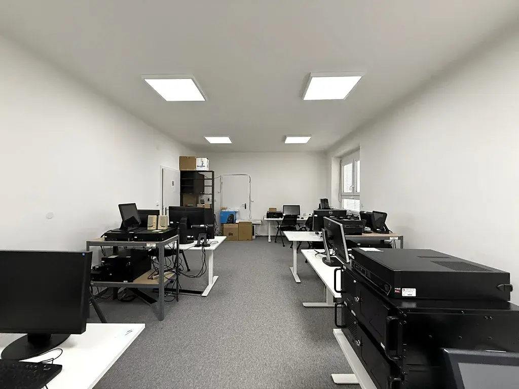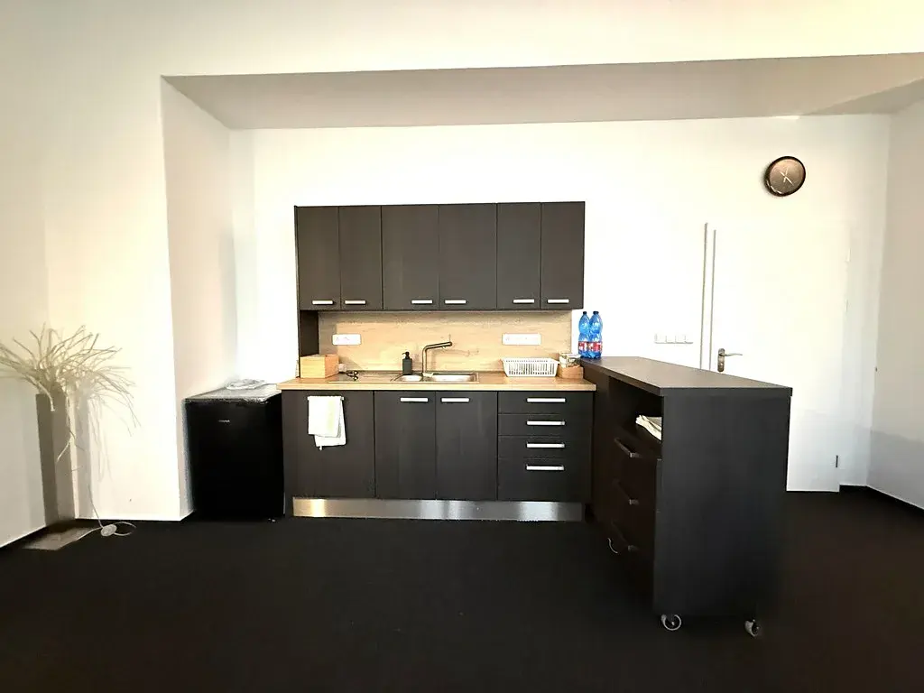 Nabízený nebytový prostor se nachází v kamerově hlídané budově za bránou. Kancelář má celkovou výměru cca 38 m2 a nachází se v přízemí. Prostor je příjemně prosvětlený díky dvěma oknům, která vytvářejí vzdušnou a komfortní pracovní atmosféru. Kancelář je nově vybavena malou kuchyňskou linkou s dostatečným úložným prostorem a dřezem. Na chodbě jsou společné prostory jako je WC nebo zasedací místnost, kterou si lze pronajmout za poplatek. Zasedací místnost je vybavena velkým stolem se židlemi, křesly, televizemi a dalším nábytkem včetně kuchyňské linky s dřezem a lednicí.