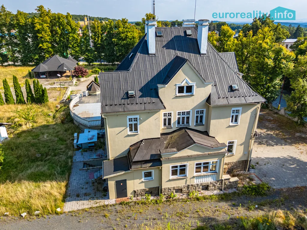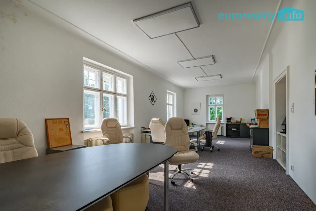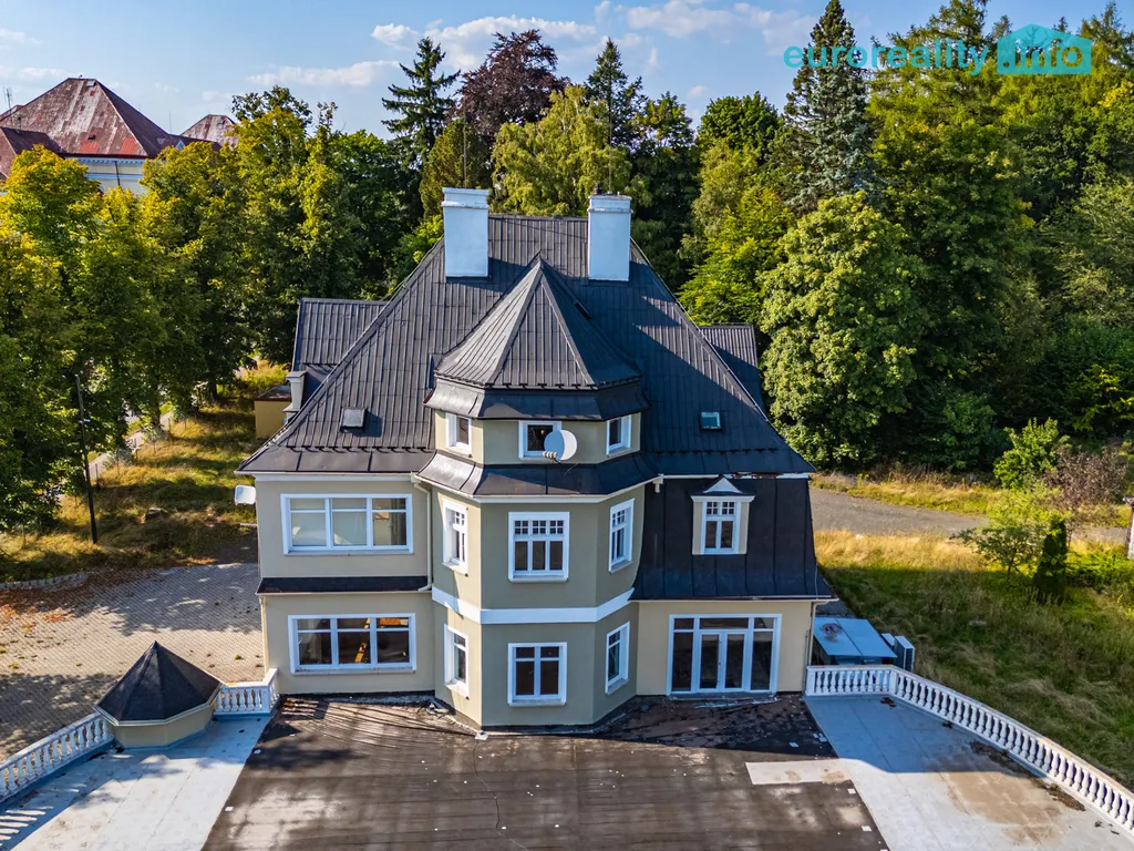 Hlavní objekt je trojpodlažní s jedním podzemním podlažím, kombinuje historickou vilu s moderní přístavbou a disponuje velkorysými prostory které jsou vhodné k široké škále využití.