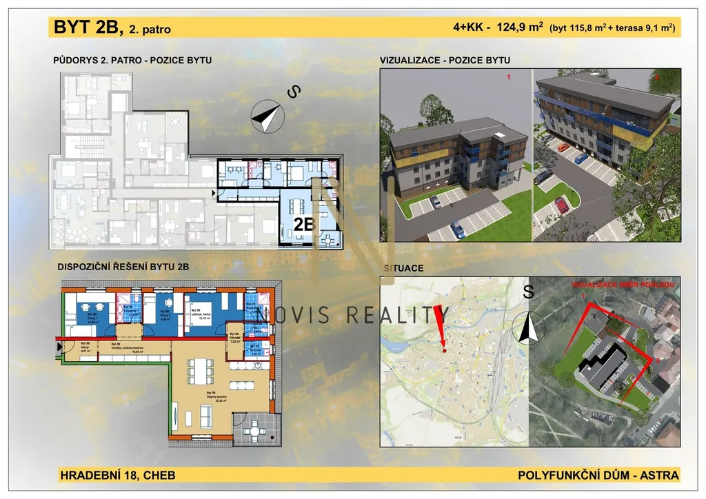 V rámci projektu Astra v Chebu nabízíme k prodeji byt 4+kk o velikosti 115,8 m² s terasou o velikosti 9,1 m². Tento polyfunkční dům přinese nadstandardní bydlení v jedné z nejžádanějších lokalit města. Byt bude součástí moderní rekonstrukce s plánovaným dokončením do roku 2025. Dispozice 4+kk nabízí komfortní bydlení s nádhernými výhledy na město, na sportovně-rekreační areál Krajinka nebo Chebský hrad.