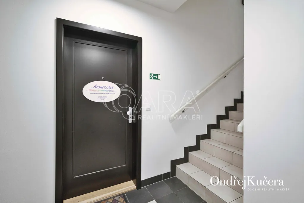 Má 25,7 m² s dispozicí jedné velké místnosti s částečně odděleným pultem a zázemím, k tomu malý kuchyňský kout s lednicí a dřezem, koupelna se sprchou a toaletou. Prostor je umístěný v 1. podzemním podlaží a je zkolaudován pro komerční využití a je připraven k okamžitému provozu bez nutnosti dalších investic. Rekonstrukce proběhla v roce 2021. Podlahy jsou převážně vinyl v hlavním prostoru a keramická dlažba v koupelně, nové příčky jsou z Ytongu, podhledy sádrokartonové. Okno s izolačním dvojsklem a mříží je orientováno do klidného vnitrobloku. Vstupní dveře jsou bezpečnostní, osazené v ocelové zárubni. Vytápění je všude řešeno podlahovým topením z centrálního zdroje, v koupelně je navíc topný žebřík s možností elektrického provozu.