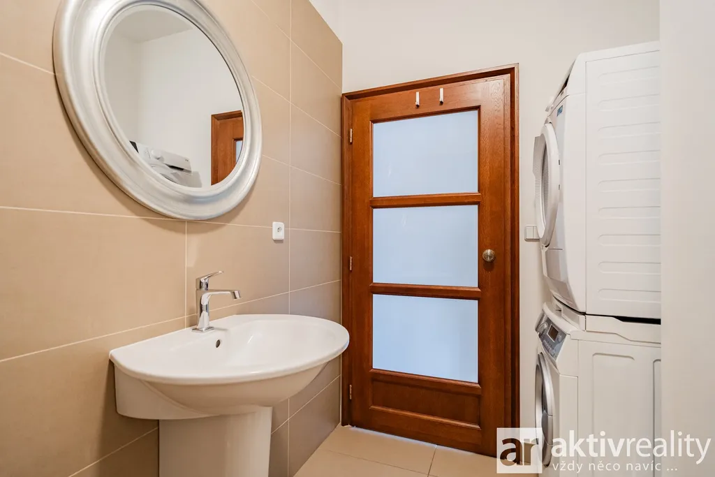 Byt se nachází v prvním patře moderní cihlové vily, kde je pouze 12 bytů se soukromou zahradou, grilem a venkovním bazénem. V ceně bytu je garážové stání.