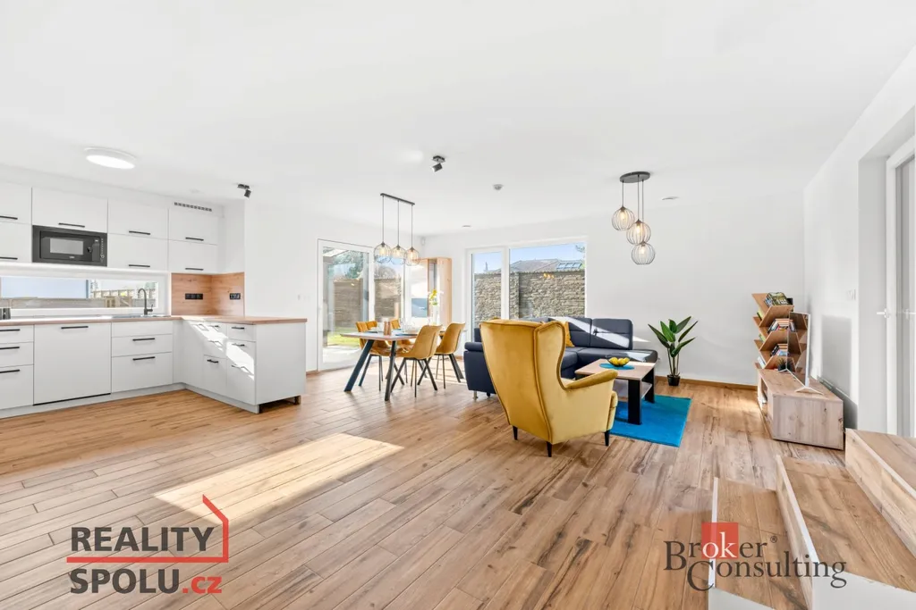 Dům je navržen tak, aby poskytoval komfortní bydlení pro rodinu – nabízí prostorný obývací pokoj propojený s kuchyní a přímým vstupem na terasu a zahradu. Velká okna zajišťují dostatek denního světla a příjemnou atmosféru celého obytného prostoru.