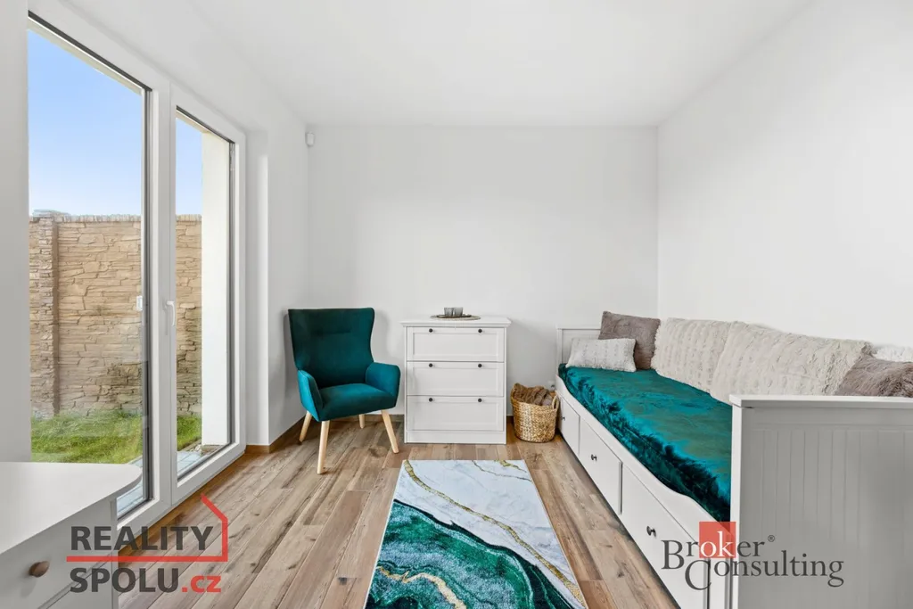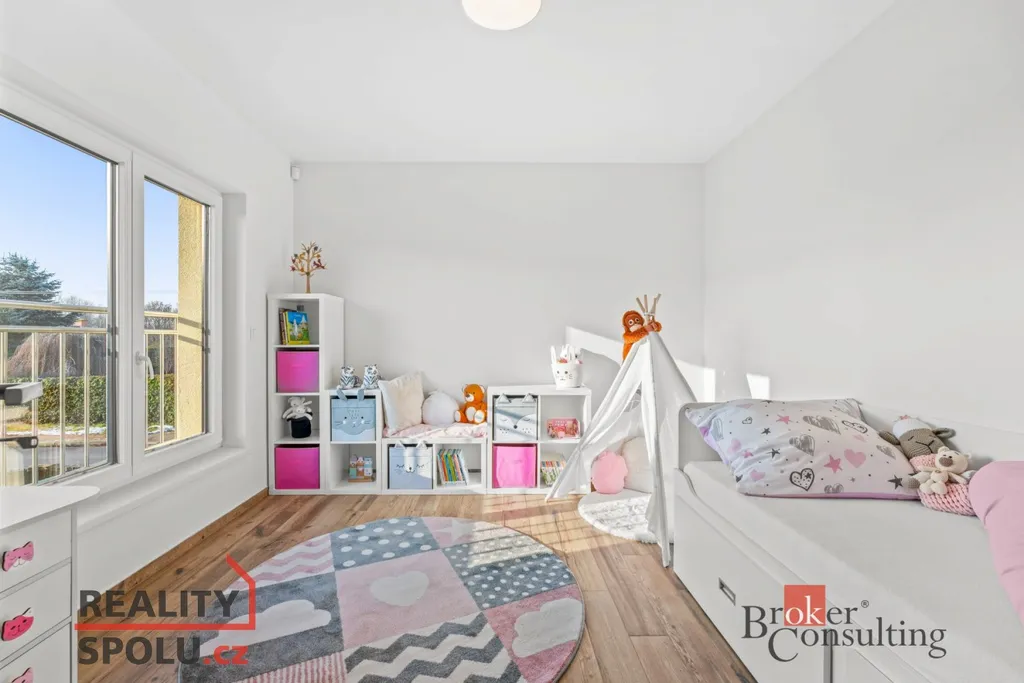 V horním podlaží se nachází ložnice a další pokoje vhodné jako dětské pokoje, pracovna nebo pokoj pro hosty. Dispozice domu je praktická a umožňuje flexibilní využití podle potřeb rodiny.