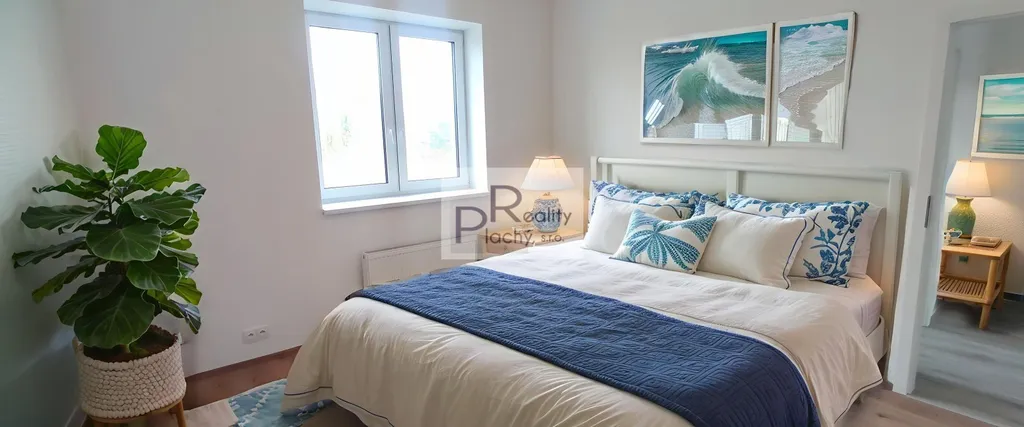 - Kvalitní vybavení: Interiér zdobí moderní plovoucí laminátové podlahy a nová kuchyňská linka vybavená kvalitními vestavnými spotřebiči.