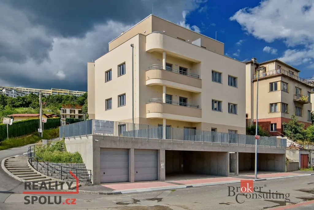 Dispozice: předsíň (6,9 m2), koupelna (3,9 m2), obývací pokoj (29 m2) s kuchyňským koutem a prostorem na spaní ). Kuchyňská linka je vybavena kompletně vestavěnými spotřebiči (lednice s mrazákem, sklokeramická varná deska, el. trouba, myčka, digestoř, mikrovlnná trouba). V bytě je vlastní plynový kotel k vytápění a ohřev teplé vody, což je velkou výhodou, jelikož můžete ovlivnit vlastní spotřebu. Dále v bytě je klimatizační jednotka a v předsíni šatní skříň, na podlaze je vinyl a v koupelně dlažba, okna jsou se žaluziemi a trojskla. Koupelna je světlá s oknem, toaletou, vanou se zástěnou a umyvadlem. Prostor na pračku je v předsíni. K bytu náleží sklep v přízemí domu a parkovací místo v samostatné garáži, již zahrnuto v ceně nájmu.
