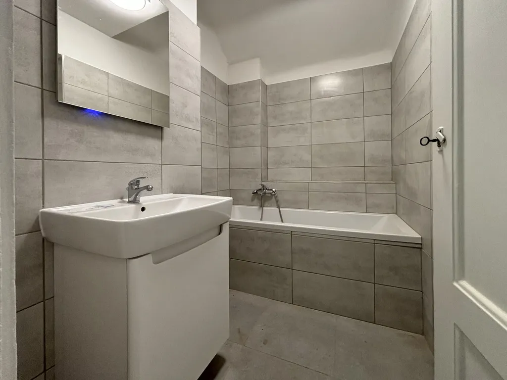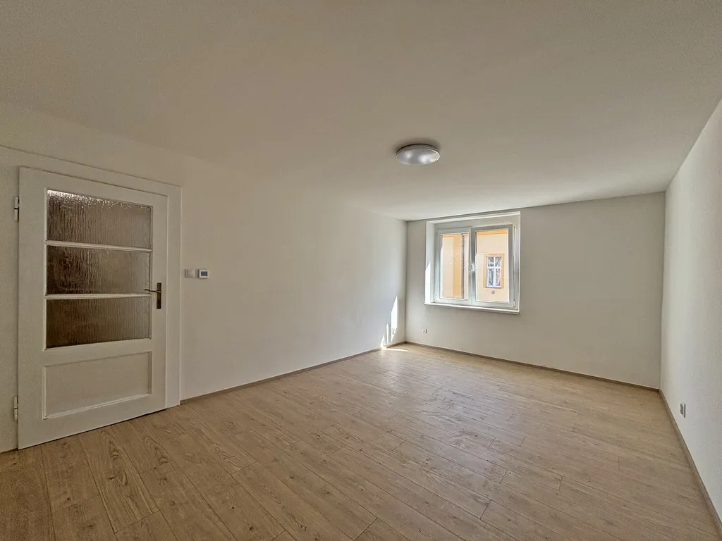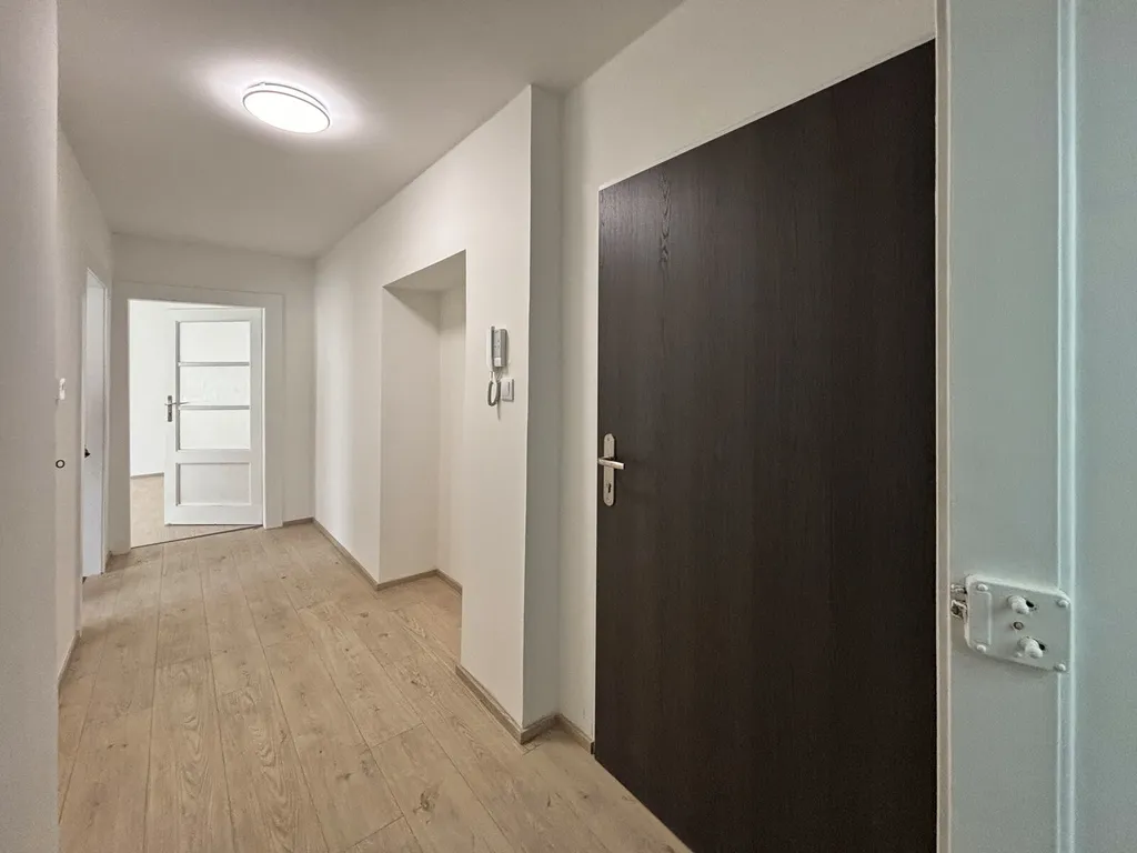 Byt se nachází ve druhém patře cihlového domu a prošel kompletní rekonstrukcí. Dispozice zahrnuje vstupní chodbu, prostornou kuchyni s novou kuchyňskou linkou, elektrickou varnou deskou, troubou s digestoří, mikrovlnnou troubou a myčkou. Dále je zde velká obývací místnost se vstupem z chodby, moderní koupelna s vanou, samostatná toaleta a komora s přívodem pro automatickou pračku. Vytápění je řešeno úsporným elektrickým stropovým topením s elektronickou regulací.