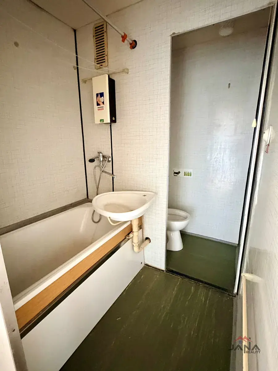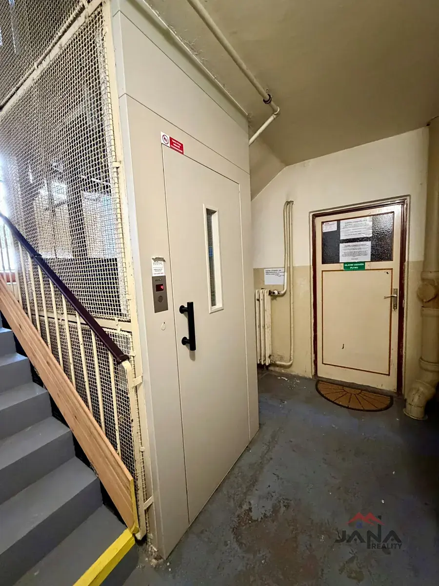 Byt v osobním vlastnictví se nachází v 1. patře cihlového domu s výtahem. Je v původním, udržovaném stavu a je vhodný k rekonstrukci dle vlastních představ. Koupelna je řešena umakartovým jádrem, kuchyňská linka je starší, ale funkční. K bytu náleží sklep v suterénu domu.