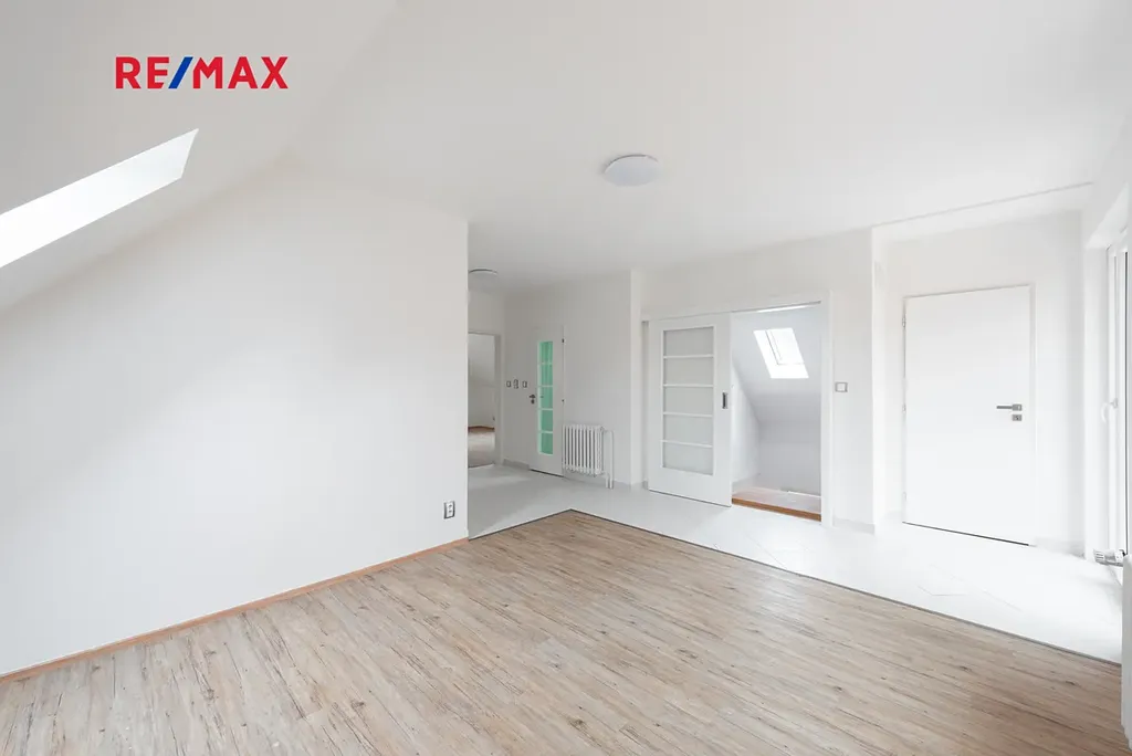 Ve 2. patře se nachází druhá bytová jednotka o dispozici 2+1 a rozloze 89,3 m². K dispozici je nová kuchyňská linka vč. kvalitních spotřebičů a koupelna s vanou a oknem, tj. obytná plocha 78,8 m² + zasklený balkon o rozloze 10,5 m² + prostorná zimní zahrada. Balkon se díky celoprosklené konstrukci a zasklení zrcadlovými skly stává ideálním místem pro odpočinek po celý rok. Druhá zimní zahrada poskytuje přímý vstup na zahradu.