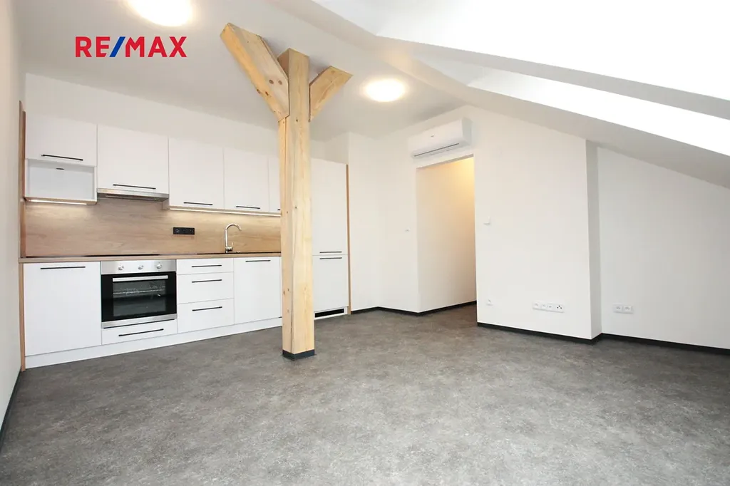 Dovoluji si Vám nabídnout k pronájmu nově zrekonstruovaný podkrovní byt 2+kk o výměře 44 m2 v centru města. Bytová jednotka se nachází ve 3. NP bytového domu v ulici Kmochova. Kolaudace bytového domu byla 11.4.2023.