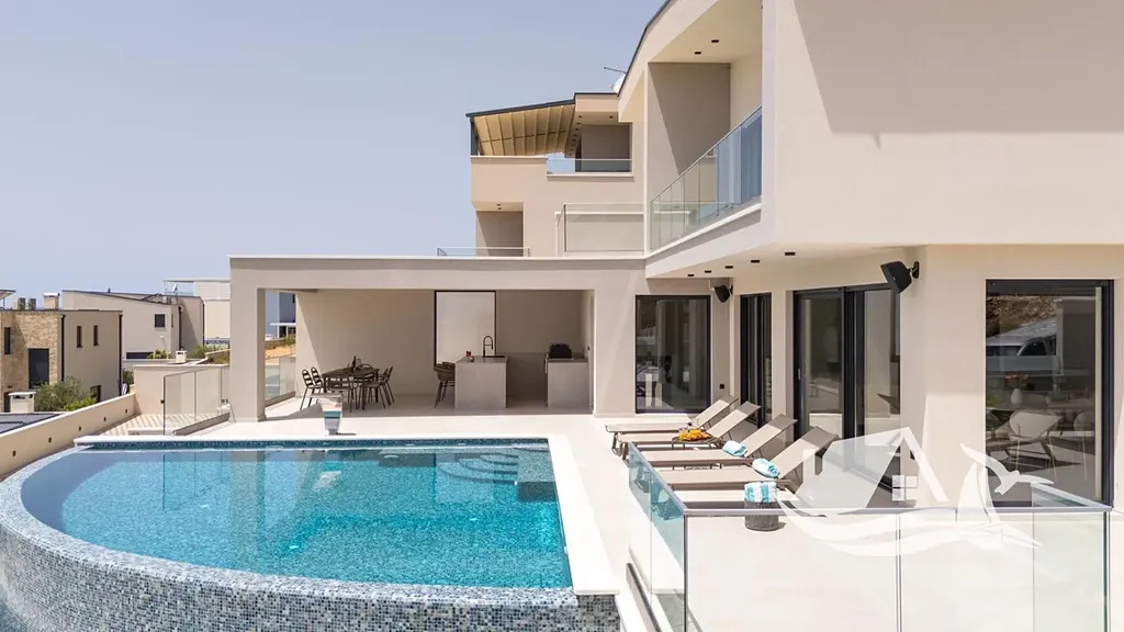 Tato výjimečná vila nabízí nadstandardní prostor, soukromí a atmosféru, která spojuje luxusní bydlení s chytrou investicí na jednom z nejžádanějších míst chorvatského pobřeží. Nemovitost se nachází na prostorném pozemku o velikosti 618 m² a poskytuje čistou obytnou plochu 292,90 m² rozloženou do tří podlaží. Celková hrubá obytná plocha činí 384 m², což vytváří dostatek prostoru pro pohodlné rodinné bydlení i prémiový turistický pronájem.