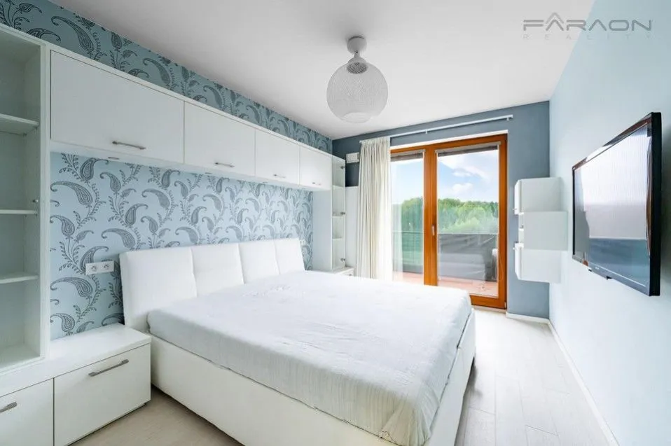 Pronájem kompletně vybaveného bytu 3+kk s terasou a nerušeným výhledem do zeleně a bezprostředně navazující přírodní památky Modřanská rokle, umístěného ve 4. patře uzavřeného rezidenčního komplexu Tulipa Modřanská rokle v klidné rezidenční části Modřan. Cena nájmu zahrnuje podzemní parkovací stání. Rezidence je zasazena do zeleně a poskytuje vysoký standard bydlení včetně 24/7 ostrahy, recepce, privátního parku, dětského hřiště a venkovního ohniště, které dotvářejí pocit soukromí a komfortu pro rezidenty.