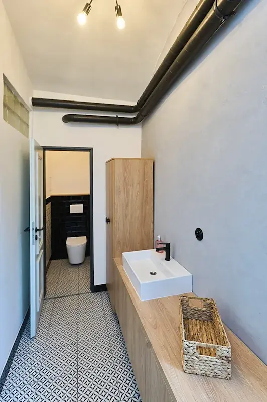 Ve společné části je k dispozici vše, co ke každodennímu pracovnímu životu potřebujete, včetně vybavené kuchyňky a sociálního zázemí.