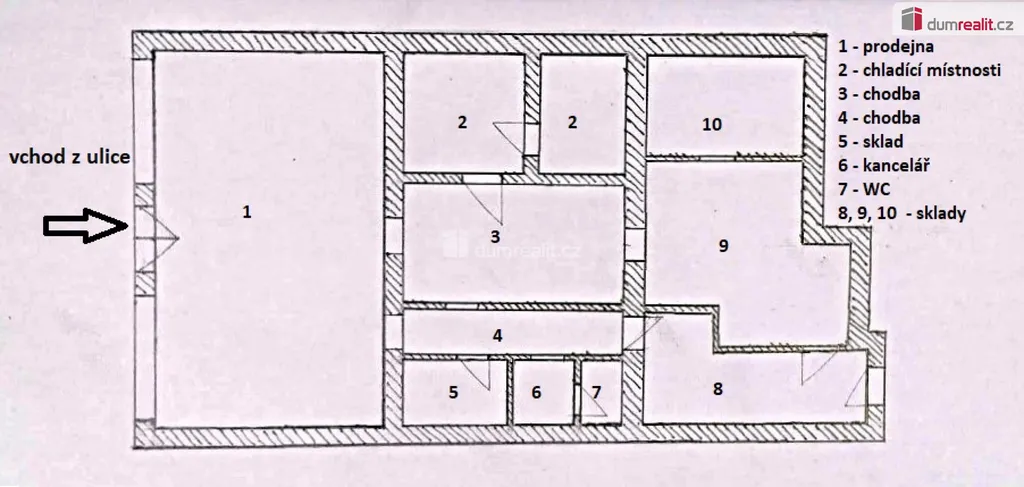 Celková dispozice zahrnuje prodejní plochu o výměře cca 45 m² a navazující skladové a provozní zázemí o výměře cca 100 m². Prostory jsou v původním technickém stavu z roku 1995 a umožňují přizpůsobení dle potřeb budoucího nájemce. Objekt je napojen na obecní vodovod, elektřina 230 V a 400 V, vytápění bylo zajištěno elektrickými přímotopy. V objektu je připravena plynová přípojka. Prostor je vhodný zejména pro provozování maloobchodní činnosti, jako např. uzenářství, lahůdky, bufet, případně jiný typ provozovny či služeb. Nemovitost se nachází ve frekventované lokalitě v blízkosti obchodního domu Lidl, s dobrou občanskou vybaveností a pohybem potenciálních zákazníků.