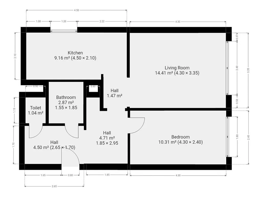 Interiér je nabízen jako nezařízený, což budoucím nájemníkům poskytuje skvělou příležitost uzpůsobit si domov přesně podle vlastního vkusu a potřeb. Srdcem bytu je kuchyně vybavená jídelním koutem a všemi potřebnými spotřebiči, včetně lednice s mrazákem, elektrické trouby, varné desky a digestoře. Obývací pokoj je částečně vybaven sedací soupravou a konferenčním stolkem, přičemž zbývající prostor lze variabilně doplnit. Druhý samostatný pokoj je ideální jako ložnice či pracovna. Koupelna disponuje sprchovým koutem a pračkou, zatímco toaleta je pro maximální pohodlí umístěna samostatně.