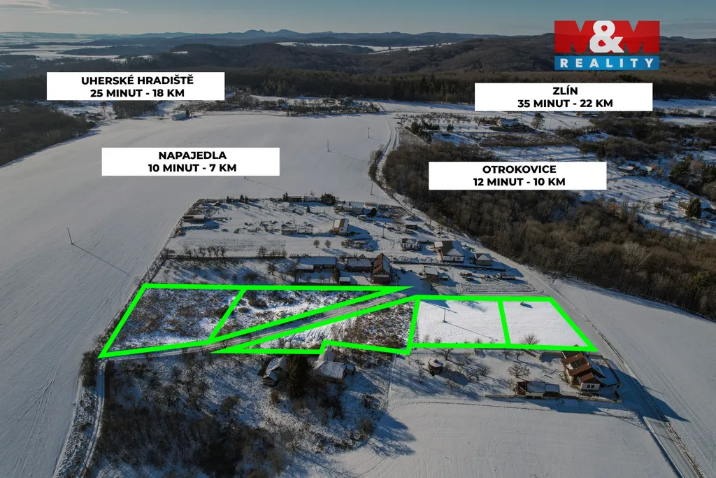 Máme pro Vás pozemek určený k výstavbě. Celková velikost nabízeného pozemku je 8949 m2 a z něj budeme rozdělovat menší pozemky. Jejich velikosti budou definovány potřebami jednotlivých zájemců. Zmíněná velikost 1300 m2 je tedy pouze navrhovanou velikostí. Tato část pozemku, je dle územního plánu vedena v BI (plochy individuálního bydlení). Pozemek je rovinatý a vede k němu veřejně přístupná komunikace. Pozemek se nachází v místní lokalitě zvané Nad Hradským. V této lokalitě jsou již nějaké rodinné domy postaveny, ale jedná se spíš o klidnou lokalitu, poskytující dostatek soukromí a krásné výhledy na okolí. Lokalita je na okraji CHKO Chřiby, ale není už součástí CHKO. Pro jednotlivé domy se předpokládá vybudování studní (je k tomu zpracován hydrogeologický posudek s rozmístěním zdrojů vody) a čističek odpadních vod. Domy, které zde budou postaveny, mohou mít 2 NP a není stanoven koeficient zastavitelnosti. Ke každému pozemku budeme připisovat také podíl na příjezdové komunikaci.