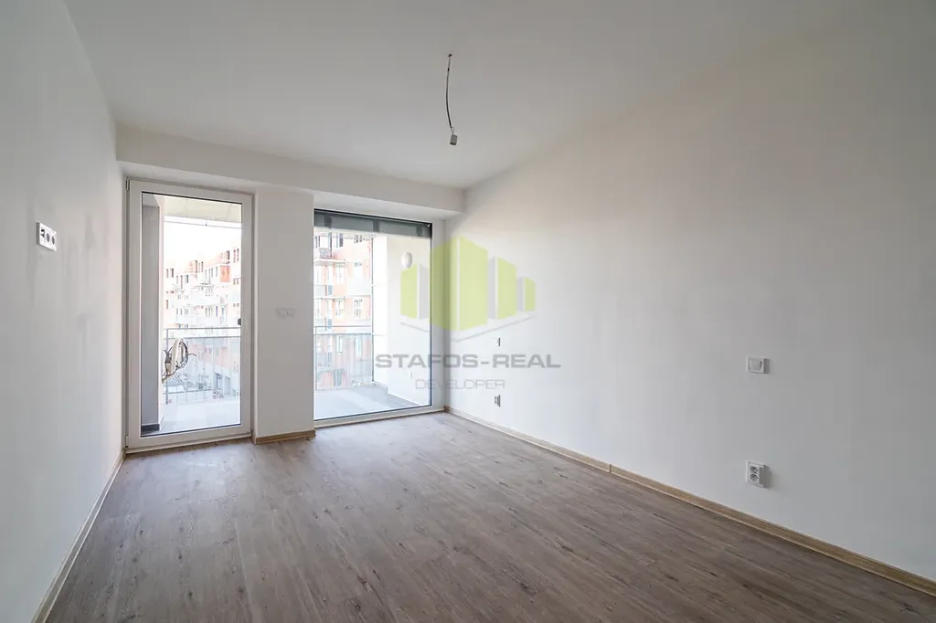 Dispozice bytu zahrnuje obývací pokoj s kuchyňským koutem, samostatnou ložnici, předsíň, prostornou šatnu a koupelnu s toaletou. Z obou obytných místností je přímý vstup na lodžii orientovanou na východ do tichého vnitrobloku. Součástí pronájmu je také sklep o velikosti 2,68 m² a vnitřní parkovací stání v domě, které zajišťuje pohodlné parkování v centru města.