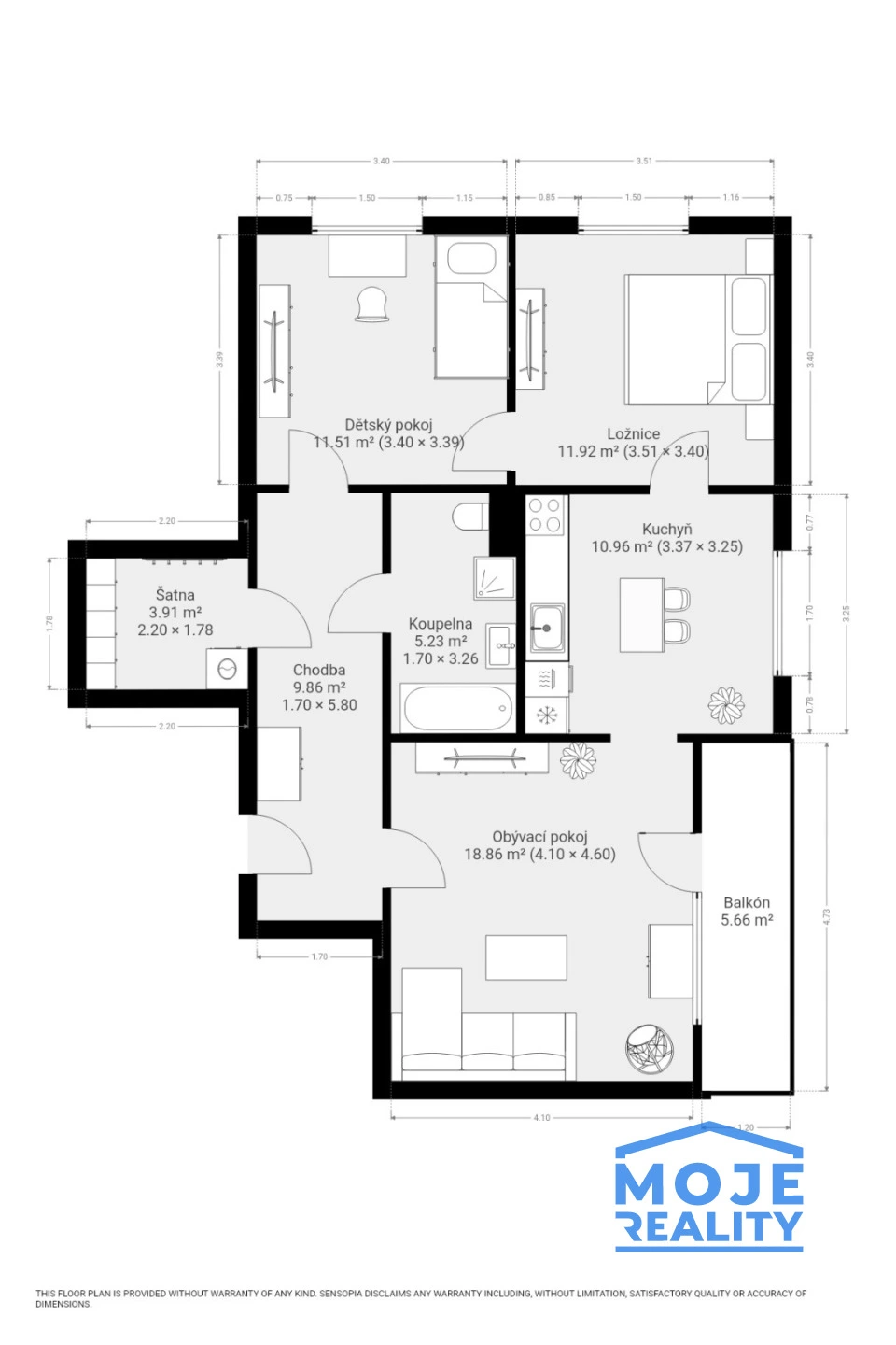 Dispozice bytu je praktická a nabízí dostatek úložného prostoru i soukromí pro všechny členy domácnosti. Byt je vhodný jak k okamžitému nastěhování, tak i jako investice.