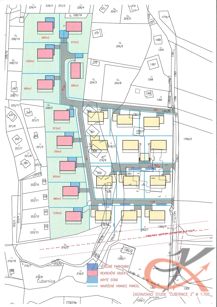 • Maximální zastavěnost pozemku činí 40 %, což zahrnuje jak samotné stavby, tak zpevněné plochy.