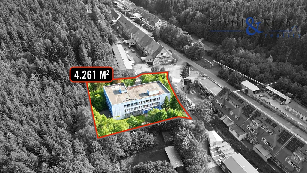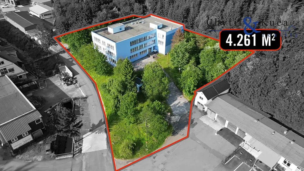 Realitní kancelář Chytil & Kuča reality Vám nabízí k prodeji betonový (železobetonový monolit) komerční objekt, který se nachází v bývalém areálu Zbrojovky, Vsetín-Jasenice. Dle územního plánu je daný objekt určen pro výrobu a skladování. Podlahová plocha objektu má výměru 2.156 m2. Pozemek včetně zastavěné plochy má výměru 5.819 m2. Objekt disponuje jedním patrem podzemním a třemi patry nadzemními. V prvním podzemním patře se nachází nevyužitý rozlehlý CO2 kryt o výměře 246 m2 s potenciálem. V prvním nadzemním patře se nachází zádveří, chodba, samostatné toalety včetně umývárny pro muže a ženy, dále trezorové místnosti, čistírna, radiomístnost, úklidová místnost, strojovna, dvě garáže a výrobní, skladovací prostor. Výměra podlahové plochy v prvním nadzemním patře činí 609 m2. Ve druhém nadzemním patře se nachází bývalá jídelna, toalety, úklidová místnost a šest prostorných kanceláří. Výměra podlahové plochy ve druhém nadzemním patře činí 641 m2. Ve třetím nadzemním patře se nachází šest skladových prostor, osm kancelářských prostor a toalety. Výměra podlahové plochy ve druhém nadzemním patře činí 661 m2. Daný objekt je připojen na dálkový vodovod, obecní kanalizaci, elektřinu a optický kabel pro připojení k internetu. K objektu je plánována přípojka plynovodu. Pro více informací a pro případnou prohlídku dané nemovitosti neváhejte kontaktovat makléře.