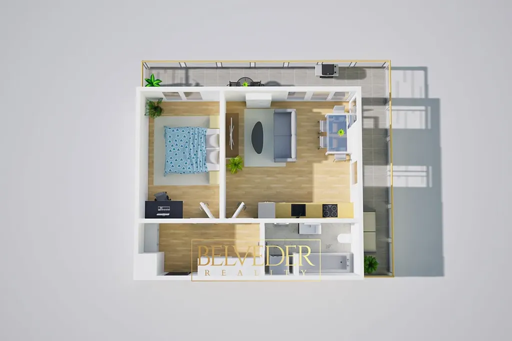 V zastoupení majitele nabízíme na prodej byt 2+kk s velkou terasou a garážovým stáním