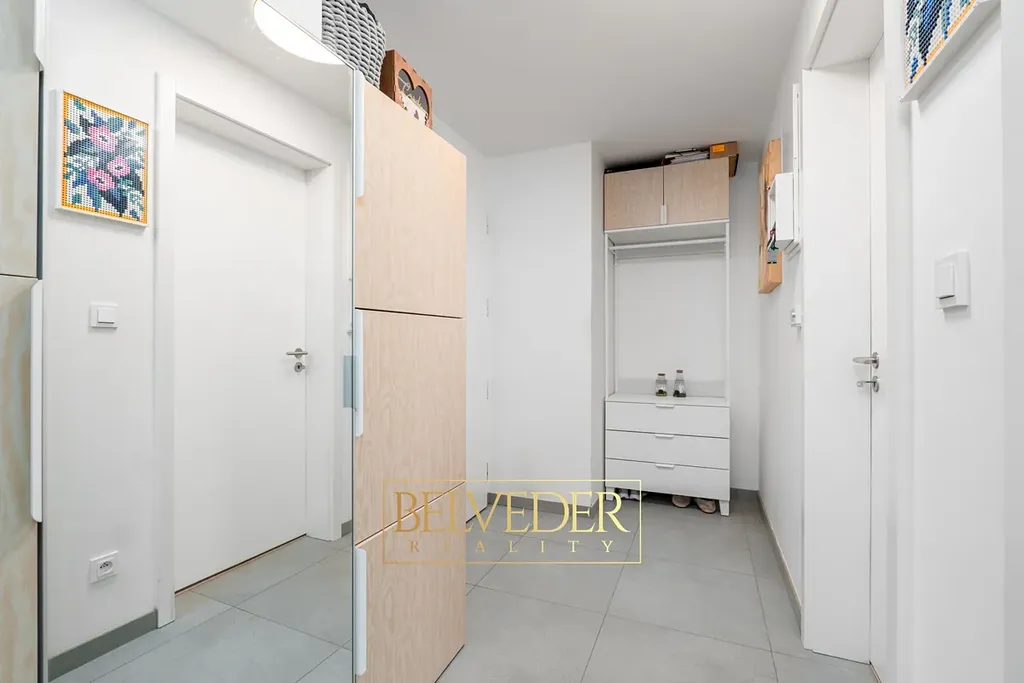 Moderní a světlý byt, kde se hned cítíte doma. Klid, prostor a světlo vytvářejí příjemnou atmosféru už při vstupu.