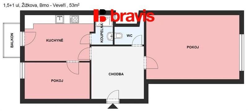 Pronájem bytu 1+1, Brno, Žižkova, 53 m2