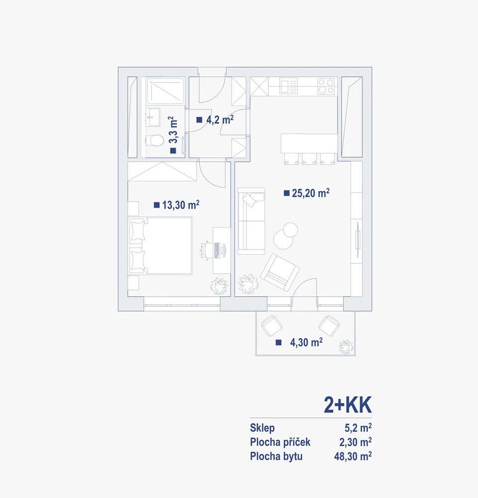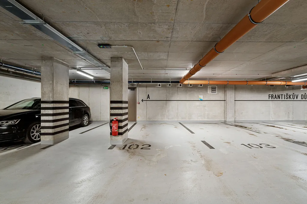 K bytu náleží parkovací stání v podzemní garáži a nadstandardně velký sklep o ploše 5 m², což výrazně zvyšuje komfort každodenního bydlení.