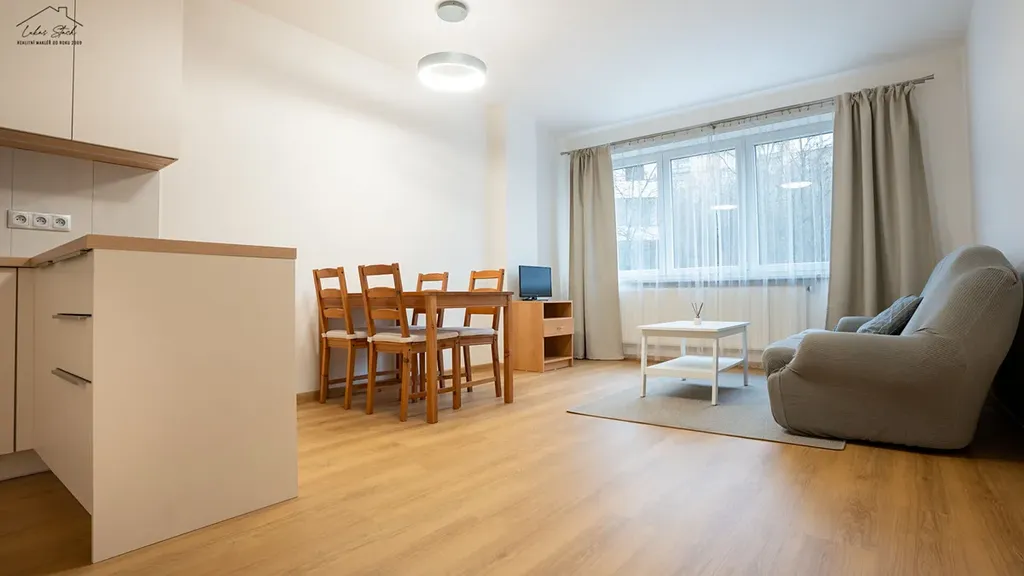 Dispozice je praktická: dva samostatné pokoje poskytují dostatek soukromí, nechybí koupelna se sprchovým koutem a samostatná toaleta. Byt je kompletně vybavený — pračka, myčka, kuchyňská linka na míru, sedací souprava, postel, skříně… vše přesně tak, jak vidíte na fotkách. Pokud byste si ale chtěli interiér zařídit podle sebe, majitel může dle vzájemné dohody část nebo veškerý nábytek vystěhovat.