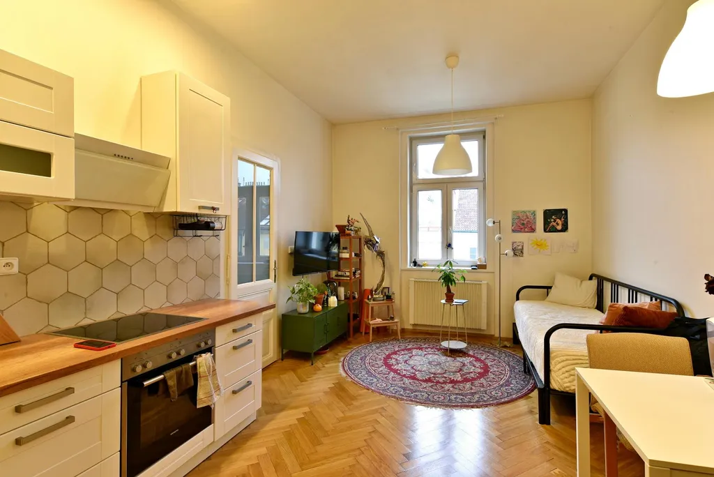 Nabízíme k pronájmu stylový byt o dispozici 2+kk s balkonem do klidného vnitrobloku, o celkové výměře 45 m, situovaný ve 4. patře cihlového domu s výtahem, v jedné z nejžádanějších lokalit Prahy přímo naproti Riegrovým sadům.
