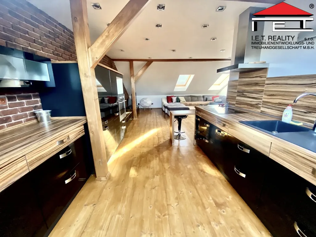Byt je v rámci rodinného domu umístěn ve 2. patře a je oddělený jako samostatná jednotka. Byt je velmi dobře dispozičně řešen, kdy ze vstupního prostoru je přístup do kuchyně, situované do zahrady. Navazuje jídelna a obývací prostor. Následně jsou dvě oddělené místnosti, ložnice a pokoj. Koupelna se sprchovým koutem, WC, umyvadlem a pračkou. Byt je kompletně zařízen, viz. fotografie, nechybí v něm klimatizace, myčka nádobí, trouba, indukční deska, televize, designový nábytek, zkrátka je zařízen pro Váš komfort. Volný od 01.03.2026. Termíny prohlídek a více informací po domluvě.