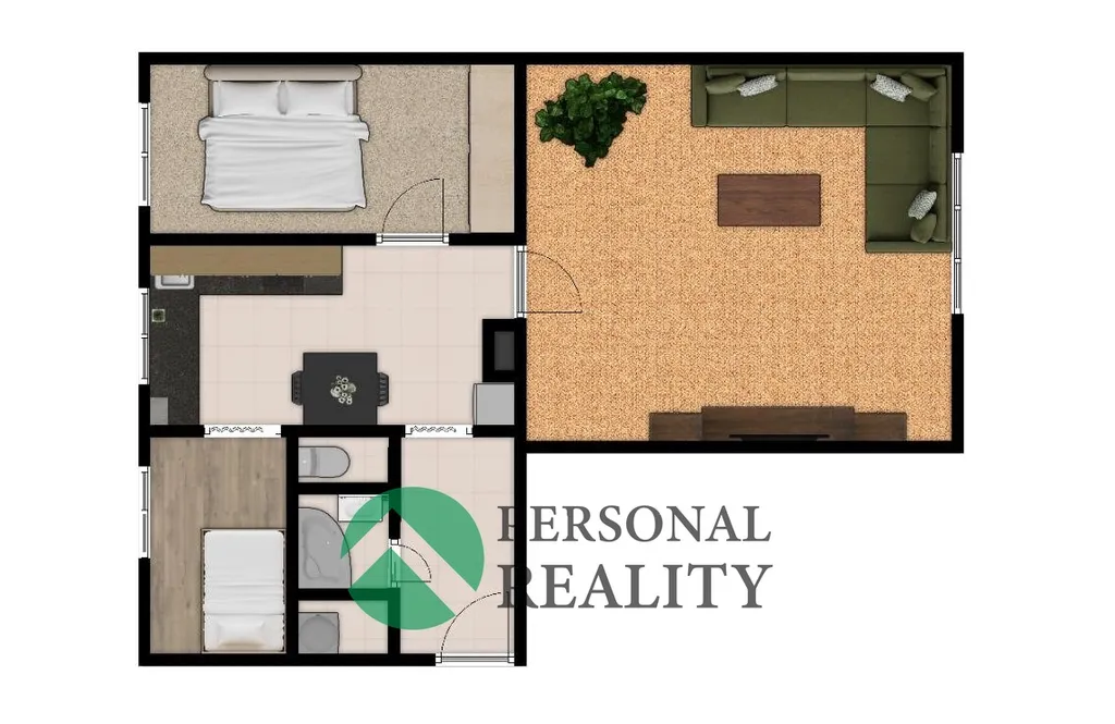 Byt disponuje prostorným obývacím pokojem, kuchyní se starší ale velice zachovalou kuchyňskou linkou se všemi potřebnými spotřebiči, ložnicí s vestavěnou skříní, dětským pokojem, samostatnou toaletou, koupelnou s rohovou vanou a technickou místností. Vytápění bytu je možné jak elektrickým kotlem tak kotlem na tuhá paliva.