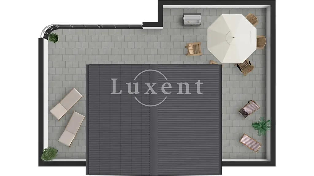 Centrální částí bytu je prostorný obývací pokoj propojený s moderně vybavenou kuchyní, ze které je rovněž přístup na druhý balkon. Pokud vystoupáte po schodišti do druhého podlaží, ocitnete se na střešní terase o rozloze 93 m², která poskytuje výhledy do okolí a stane se Vaším soukromým útočištěm pro relaxaci i společenské akce.